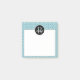 Dieses Post it Note Pad weist ein weißes trendiges doodle wirl-Muster auf einem aquamarinen Hintergrund auf. Ein schwarzer Kreis, oben, bietet ein individuelles Monogramm und Namen.