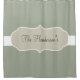 Hier ist ein eleganter Familienduschvorhang mit einem Monogramm-Emblem, den Sie mit Ihrem eigenen Familiennamen oder Ihrer eigenen Botschaft personalisieren können. Entworfen, um Ihr Bad auf eine persönliche Art zu dekorieren und Ihre Familie und Besucher willkommen zu heißen.