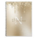 Herrliche Imitate goldfarbene metallische Hintergrund mit eleganten Imitaten Glitzer Tropfen. Fügen Sie Ihren Namen und Monogramm hinzu und machen Sie dieses süße Notizbuch zu Ihrem eigenen. Ich kann nicht übersehen, wie schön dieses einfache Notizbuch in diesem Design ist.