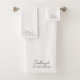 Personalisiertes, elegantes Monogramm schwarzes Drehbuch und Serienname, rot rosa Bad Handtuch Set. Die Badezimmer sind mit einem minimalistischen typografischen Stil dekoriert.
