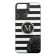 Monogramm-elegante schwarze moderne Streifen iPhone mit BlumenHüllen.