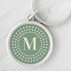 Keyring mit dem Monogramm-Initial in einem runden, radialen Punktrahmen auf einem halbgrünen Hintergrund.