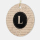 Dieses elegante personalisierte Ornament ist ein wunderbares Geschenk für einen Schriftsteller, Buchliebhaber oder jeden, der Antiquitäten genießt. Es verfügt über ein individuelles Monogramm Erstmaligkeit in einem schwarzen Kreis auf einem Hintergrund aus einem antiken Buchstaben in schöner handgeschriebener Kalligrafie.