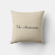Beige und türkisfarbene Kissen mit gestreiften Kissen, geben Sie Ihren Familiennamen ein und tragen Sie ihn auf der Vorder- und Rückseite ein. Andere Stile verfügbar.