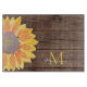 Dieses botanische, blumengeschmückte Brett ist mit einer gelben Aquarellsonnenblume auf braunem Holzfußboden dekoriert. Einfach mit Ihrem Namen und Monogramm anpassbar. Das ist eine großartige Hauswärme oder ein persönliches Geschenk. Original Wasserfarbe Sonnenblume © Michele Davies.