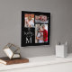Auf dieser stilvollen quadratischen Wanduhr ist ein Monogramm Buchstaben in der Ecke dann 3 Fotos mit dem Text auf der Seite mit Familiennamen und Datum, wo Sie nach Ihren Wünschen mit Ihren eigenen Fotos und Familiennamen anpassen können.