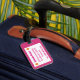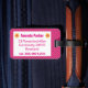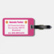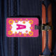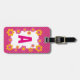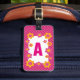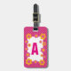 Niedliches fuchsienrosa und gelbes Blumendesign mit Monogramm. Fügen Sie Ihren Anfangsbuchstaben und Details auf rosa Gepäckanhänger mit Blume hinzu.