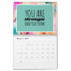 Mit diesem inspirierenden Kalender geben Sie sich in diesem kommenden Jahr eine zusätzliche Motivation. Das Design bietet einen Ort, an dem Sie Ihren Namen anpassen können. Einige Zitate, die in den Monaten sind, beinhalten "wenn nicht jetzt wann", "du got dies", "die Welt ist deine" und 9 mehr.