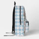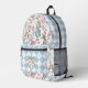 Vintage Alice im Wunderland Charakter Märchenbackpack. Das Design umfasst Alice im Wunderland-Figuren, den verrückten Hasser, Alice, das weiße Kaninchen, Blumenmuster und märchenhafte Tee-Party-Elemente, die vorne mit den Seiten und der vorderen Hosentasche mit einem eleganten blau-weiß Schachbrettmuster entworfen wurden. Personalisieren Sie mit zwei zweibuchstabigen Monogrammen, die in unserem Wappen der Herzkronen angezeigt werden. Designed by Moodthology.