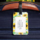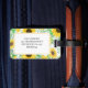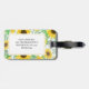 Botanik weibliche Gepäckmarke mit wasserfarbenen gelben Sonnenblumen auf weißem Hintergrund.
