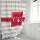Monogramm für Beige und Rote Streifen Duschvorhang