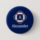 Ein nautisches Design mit einem Lifesaver-Bild mit einem anpassbaren Monogramm und dem Namen Ihrer Wahl auf einem marineblauen Hintergrund.