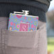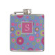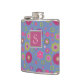 Monogramm für das Muster der rosa und blauen Blume Flachmann