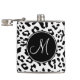 Monogramm für den Girl-Black-Leopard-Spot Flachmann