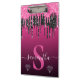 Monogramm für den Glitzer "Hot Pink & Black Drilli Klemmbrett
