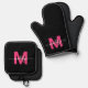 Monogramm für den heißen rosafarbenen schwarzen Na Ofenhandschuh & Topflappen-Set