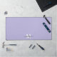 Personalisierter Anfangsname Monogramm Lila Schreibtisch matt. Fügen Sie Ihrem Arbeitsbereich eine persönliche und stilvolle Touch mit dieser benutzerdefinierten Schreibtischmatte hinzu, die sich perfekt als Bürozubehör oder als überdimensionales Mauspad eignet. Das Design weist einen weichen, lila Hintergrund auf, der einen weißen Initial- und einen schwarzen Skriptnamen in der unteren Mitte aufweist. Sie können das Monogramm überall hin verschieben, wo Sie es möchten, indem Sie die Designwerkzeuge verwenden, um Ihr persönliches Layout zu gestalten. Alle Farbtöne, einschließlich Hintergrund und Schriftart, können individuell an Ihren Stil oder Ihre Bürodekoration angepasst werden. Diese schlichte und elegante Matte ist ein Geschenk zum Geburtstag, Muttertag oder jedem besondere Anlass und verleiht jedem Raum eine polierte, personalisierte Touch.