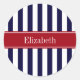 Monogramm für den Namen eines Navy Blue Stripe Runder Aufkleber