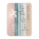 Die schöne rosa Hochzeit in Urlaubsort des Strandes rettet den Dattelmagneten mit einem Flugzeug-Trail-Herz-Monogramm über Sonnenuntergang mit Meereswellen und modernem Design. Speichern Sie die Datums-Magnete für sich allein, wenn Sie nur gewollt, die grundlegenden Informationen zu senden - oder zusammen mit einer Karte mit Reisedetails. Klicken Sie auf "Weitere Einstellungen vornehmen", um weitere Bearbeitungsoptionen für das Design zu erhalten, z. B. Textfarbe, Schriftart und Platzierung, Kartenhintergrund und Flugzeugfarbe.