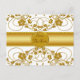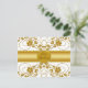 Herrliche goldfarbene Metallic Blumen & Blume auf Weiß mit goldenem Band und Platz für Text oder Monogramm. Ideal für Hochzeit, Jubiläum oder Verlobung.