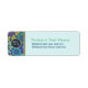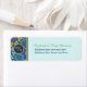 Funky abstraktes Blumenmuster mit Spiralen und Flecken in Blau und Grün mit dunkelblauem Hintergrund.