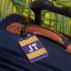 Monogramm für lila und goldene Streifen Gepäckanhänger