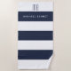 Maßgeschneidertes modernes Navy Blue Streifen Monogram Beach Handtuch.
