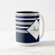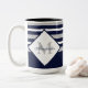 Monogramm für nautische, moderne blaugraue Streife Zweifarbige Tasse