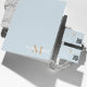 Modernes, elegantes und trendiges Notizblock in staubblauem Blau mit einer bräunlichen Monogramm und weißer Namenstypografie. Farben können auf Ihre Wahl zugeschnitten werden