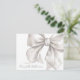 Dieses lustige und charmante Notenkartendesign zeichnet sich durch einen großen, weißen Bogen in Aquarellfarbe auf der rechten Seite aus, wobei der Name des Empfängers elegant in handgeschriebener Schriftzeichen-Kalligraphie am unteren links wird. Die Rückseite der Karte bietet einen völlig leeren Raum, ideal zum Schreiben persönlicher Notizen. Ideal für eine geschlechtsneutrale oder überraschende Babydusche oder eine Brautparty Dankeschön-Karte für Themen wie "She's Tying the Knot", diese einfache und stilvolle Karte funktioniert auch wunderbar als alltägliche Notenkarte. Der spielerische und elegante Stil des Designs macht es zu einer vielseitigen Wahl und Sie können die Schriftart- und Hintergrundfarben an Ihr Thema oder Ihre persönliche Vorliebe anpassen.