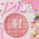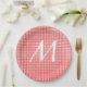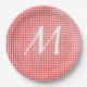 Monogramm für rotes und weißes Gingham-Design Pappteller