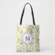 Monogramm Totbeutel mit Aquarellbildern von Zitrone und Blattmuster. Personalisieren Sie diese, indem Sie Ihr Monogramm hinzufügen. Diese Zitronentasche ist ein personalisiertes Geschenk. Matching-Elemente sind verfügbar.