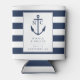 Gedenken Sie Ihre Hochzeit im preppy nautic Stil mit diesen mit Monogramm Gastgeschenk Hochzeit kann Kühler, mit einer Ankerillustrierung des Schiffes in marineblau flankiert von Ihren Initialen. Personalisieren Sie mit den Namen des Paares, dem Hochzeitsdatum und der Lage. Ein marineblau-weiß gestreifter Hintergrund rundet dieses Design für einen sommerlichen nautischen Look ab.
