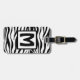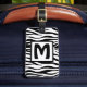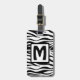 Gepäckträger mit Lederband: quadratisches gerahmtes Monogramm auf gemustertem schwarz-weißem Zebra-Hintergrund