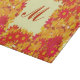 Monogramm, gerahmt mit einem Trell von herbstfarbenen Blume und Blätter in Goldtönen, Rot, Fuchsia und Braun mit hellgelbem Hintergrund