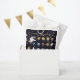 Farbenfrohe Weltraum Thema Kinder Geburtstagsparty Gefallen Taschen für den aufstrebenden Astronauten mit einer Faszination für die Planeten, Sonnensystem, Raketenschiffe und alles da draußen im Universum. Einfache Anpassung von Typografie-Details - inklusive des Namens Ihres eigenen Kindes. Imitate goldene Glitzer Sterne und Glitzern ergänzen die astrale Magie. Zusätzliche Party-Produkte und Einladungskarte in diesem Design zur Schaffung eines koordinierten Themas.