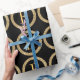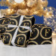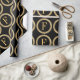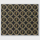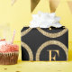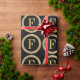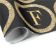 Monogramm F goldfarben auf schwarzem Hintergrund mit goldenem Rahmen.