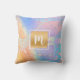 Ein funkelnd, mit Imitaten vergoldetes Monogramm-Quadrat und längliche Punkte überlagern einen pastellfarbenen, türkisblauen, lila, rosa und gelb-orangen Hintergrund auf diesem schicken, gürtelhaften, modernen, monogrammatikalischen Kissen. Macht jedes Mal, wenn Sie sich entspannen, ein lustiges und stilvolles Statement. Eine tolle Ergänzung zu Ihrem Wohnzimmer oder Schlafzimmer sowie ein wunderbares Geschenk für einen Freund! Geben Sie einfach die Initiale Ihrer Wahl ein und Sie können dieses Monogramm-Wurfkissen leicht personalisieren. Bitte schicken Sie mir eine Nachricht mit Fragen oder Wünschen.