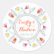 Monogram, Aquamarin-gelb-gelb-orange und rosa Moderne Garland Hochzeitsticker oder Hochzeitssticker für Siegel
