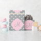 Mit Monogramm weiß auf grauem Polka Punktmuster mit pastellrosa Akzent Umhüllungspapier. Das Design zeichnet sich durch ein weißes und graues Polka-Dotmuster und eine pastellrosa Quarrefolienform aus, die Ihren individuellen Einstieg ermöglicht.