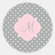 Monogramm, grau, weiß und pastellrosa Polka-Dot Runder Aufkleber