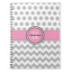 Moderne und trendy mit Monogramm Eigenschaften des gewundenen Notizbuches grau und weiße Zickzack Streifen und Polkapunkte mit einer rosa genähten Grenze des Akzents Band mit einem runden rosa Akzentrahmen umrissen in Schwarzweiss für Ihre Initiale und Namen. Zeigen Sie Ihre Persönlichkeit mit diesem gewundenen Notizbuch des Spaßes und des trendy Zickzack Streifens. Vervollkommnen Sie für eine Zeitschrift und Anmerkungen, Arbeit, Schule und Zuhause nehmen. Macht ein großes Geschenk für jede Anlässe. Klicken Sie "besonders anfertigen es!" an knöpfen Sie, um die Textgröße, die Textfarbe, die Schriftartart und mehr zu ändern! Merken Sie bitte: die Bandstich-Rahmengrenze des rosa Akzents horizontale ist festes Rosa mit einem Bandstichauftritt.