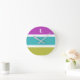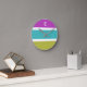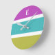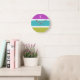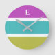 Moderne Wanduhr mit gestreiftem Design in Rosa, Grün, Blau und Weiß. Personalisieren Sie die Uhr mit Ihrem Initial, der als Buchstabe mit weißer Hauptstadt am oberen Ende der Uhr erscheint. Die auffällige Uhr ist eine nützliche und attraktive Ergänzung zum Zuhause und ein stilvolles Geschenk im zeitgenössischen Stil.