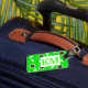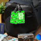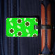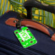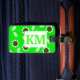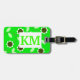Gepäckträger mit hellen Farben. Lebhaftes Grün mit weißem Blumenmuster. Fügen Sie Ihre Initialen hinzu.
