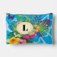 Monogramm hawaiianische tropische Blume und Schmet Zubehörtasche