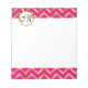 Ein Imitat glänzend rosa und Imitat goldenes Zickzack-Muster umarmt den oberen und unteren Rand dieses Pads und hat einen goldenen Kreis nahe der oberen links Kante, auf der Ihr personalisiertes Monogramm erscheint.