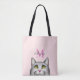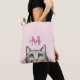 Ein niedlicher Tasche für Kinder mit einem Namen und einem ersten Monogramm in heißen rosa und dunkelgrau mit einer katzenfett gesichtsreichen Abbildung, die auf einem rosa Hintergrund große, gelb grüne Augen sieht. Personalisieren Sie diese niedliche illustrierte Kidsack-Stil.