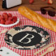 Monogramm Erntedank Plate. Schwarzer Hintergrund.