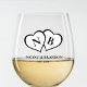 Monogramm-Hochzeit mit weißem und schwarzem Herz Weinglas Ohne Stiel