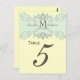 Vintage Wirbel Monogram Wedding Tischnummer Card. Passen Sie Ihre persönlichen Daten an. Bestellen Sie eine pro Tisch mit jeder Tischnummer, erhalten Sie aber trotzdem den Massen-Rabatt für die bestellte Gesamtanzahl. Muss jede Tischnummer ist eine separate Reihenfolge. Blue Wirbel Wedding Invitations ist eine elegante Mischung aus Viktorianischen Schnörkeln und modernem Monogramm und Name Hochzeitslogo und sind perfekt, um ein altes Welt romantisches Thema mit Blau und Taupe als Ihre Farbkombination Set. Passen Sie Ihre Namen und Hochzeitsfarben an, indem Sie die einfach zu bedienenden Menüeinträge von Zazzle nach der Auswahl von "Anpassen" verwenden. Design von Elke Clarke ©2010 lizenzierte Grafiken